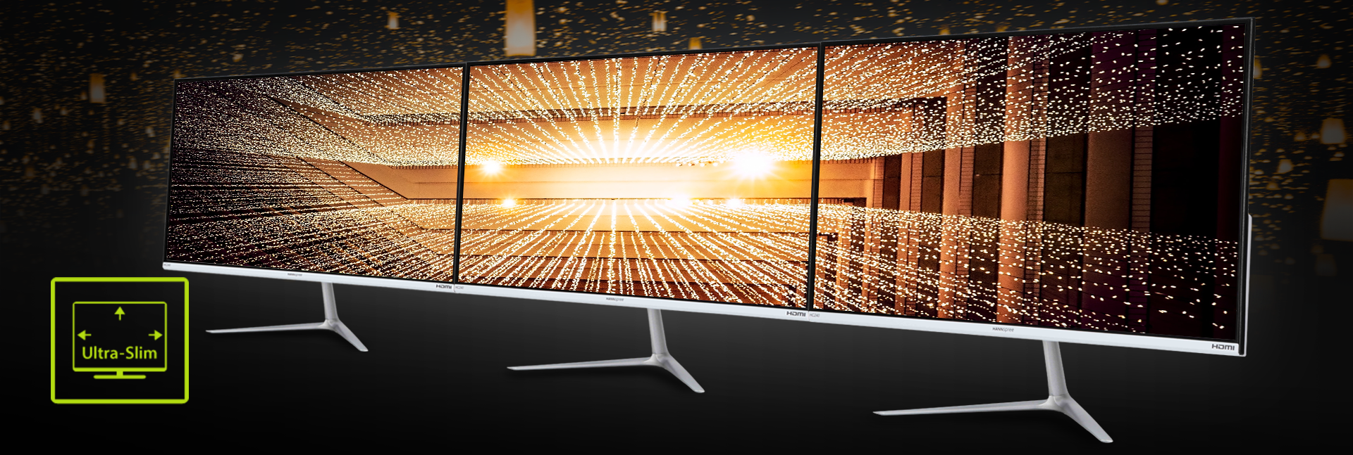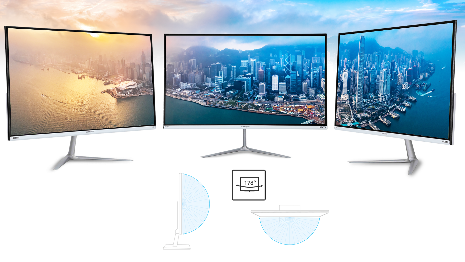Монітор HC240HFW ідеально підходить для графічного дизайну, професійних програм, ігор тощо. Його витончений дизайн з ультравузькою рамкою робить його ідеальним для багатоекранних конфігурацій, забезпечуючи майже безшовне широкоформатне зображення на двох або трьох моніторах.
