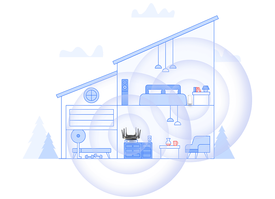 Розширте покриття Wi-Fi до найвіддаленіших куточків вашого будинку та саду, щоб ви могли повною мірою скористатися перевагами Wi-Fi наступного покоління. Дивіться фільми, грайте в ігри та користуйтеся Інтернетом швидше, ніж будь-коли раніше - з покриттям по всьому будинку.