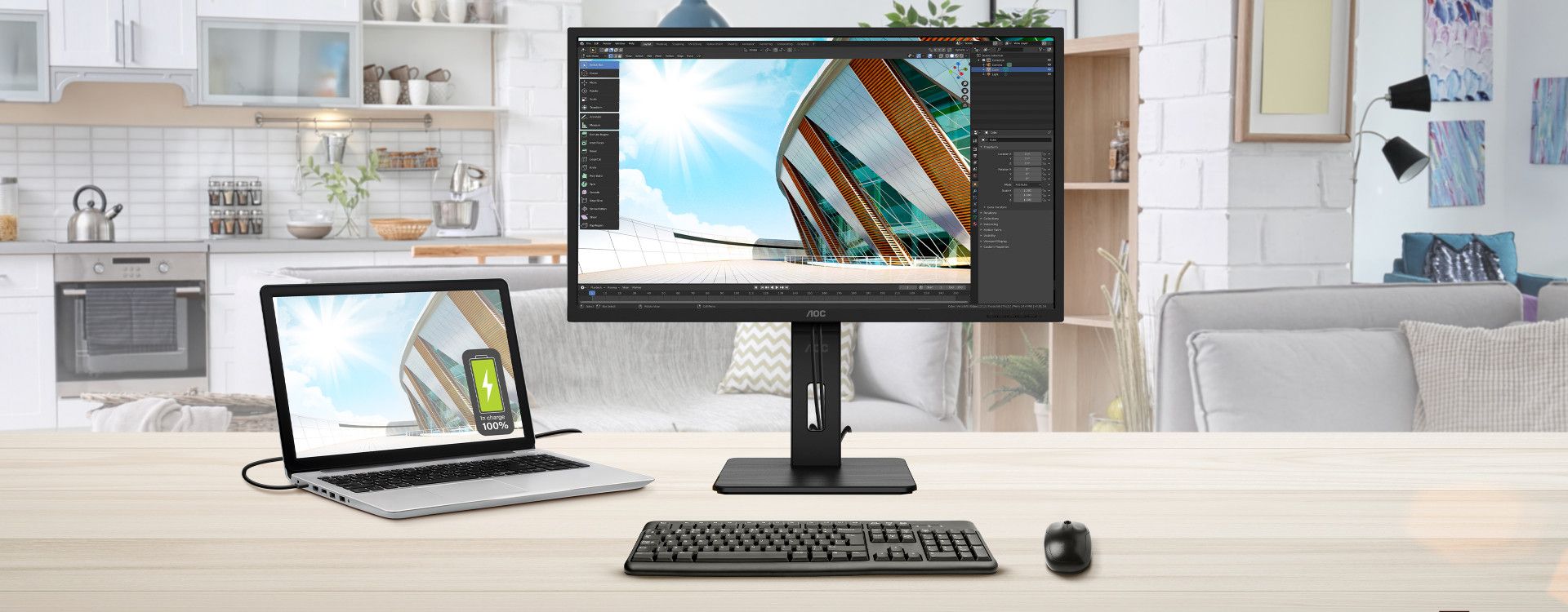 USB-C - це технологія, що набуває популярності для передачі даних і відеосигналу та живлення за допомогою одного кабелю, що дозволяє заряджати пристрої під час роботи. Використовуючи один тонкий кабель, технологія USB-C від AOC забезпечує до 65 Вт потужності для заряджання звичайних пристроїв з високим/низьким енергоспоживанням (таких як миша або клавіатура), смартфонів і ноутбуків.
