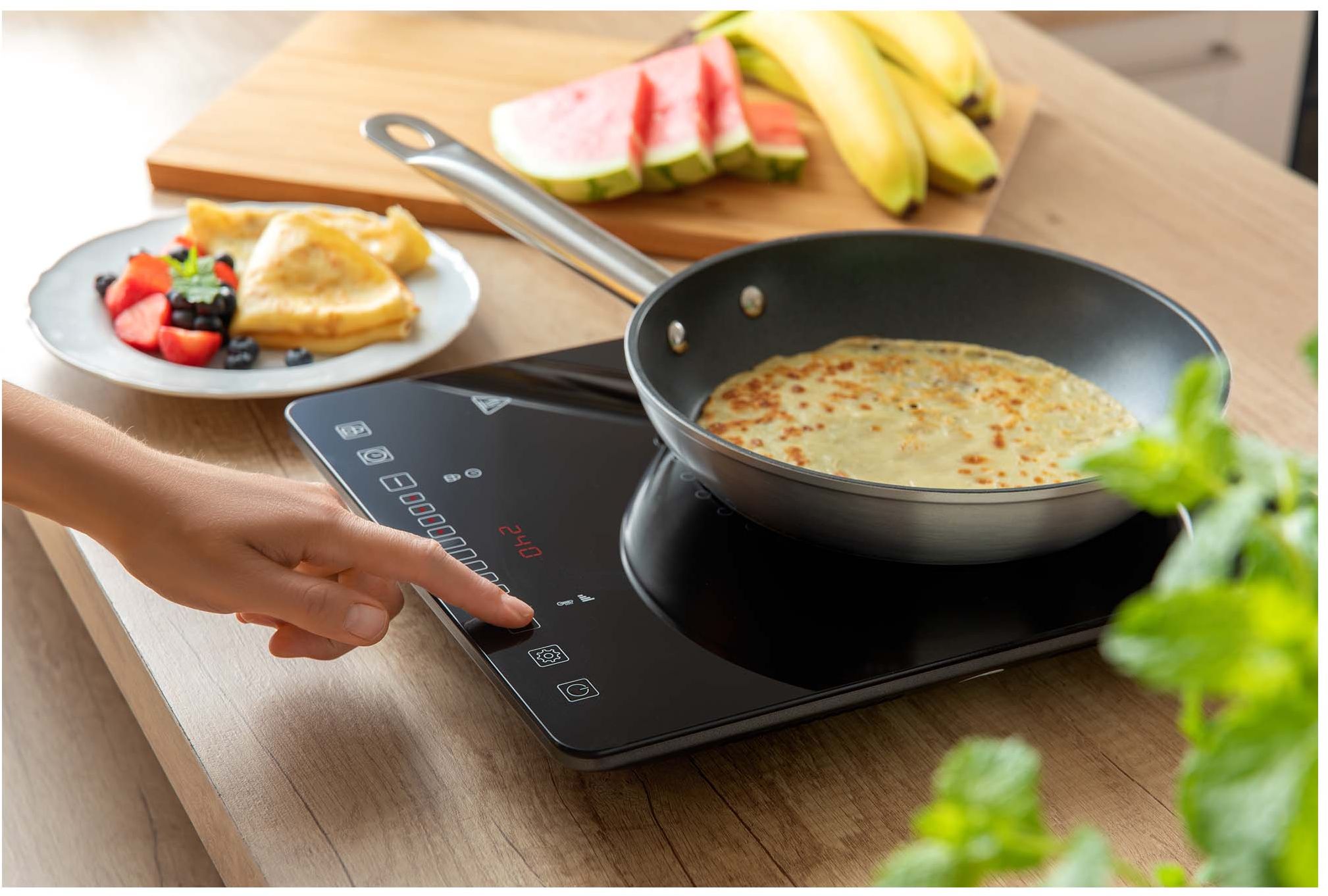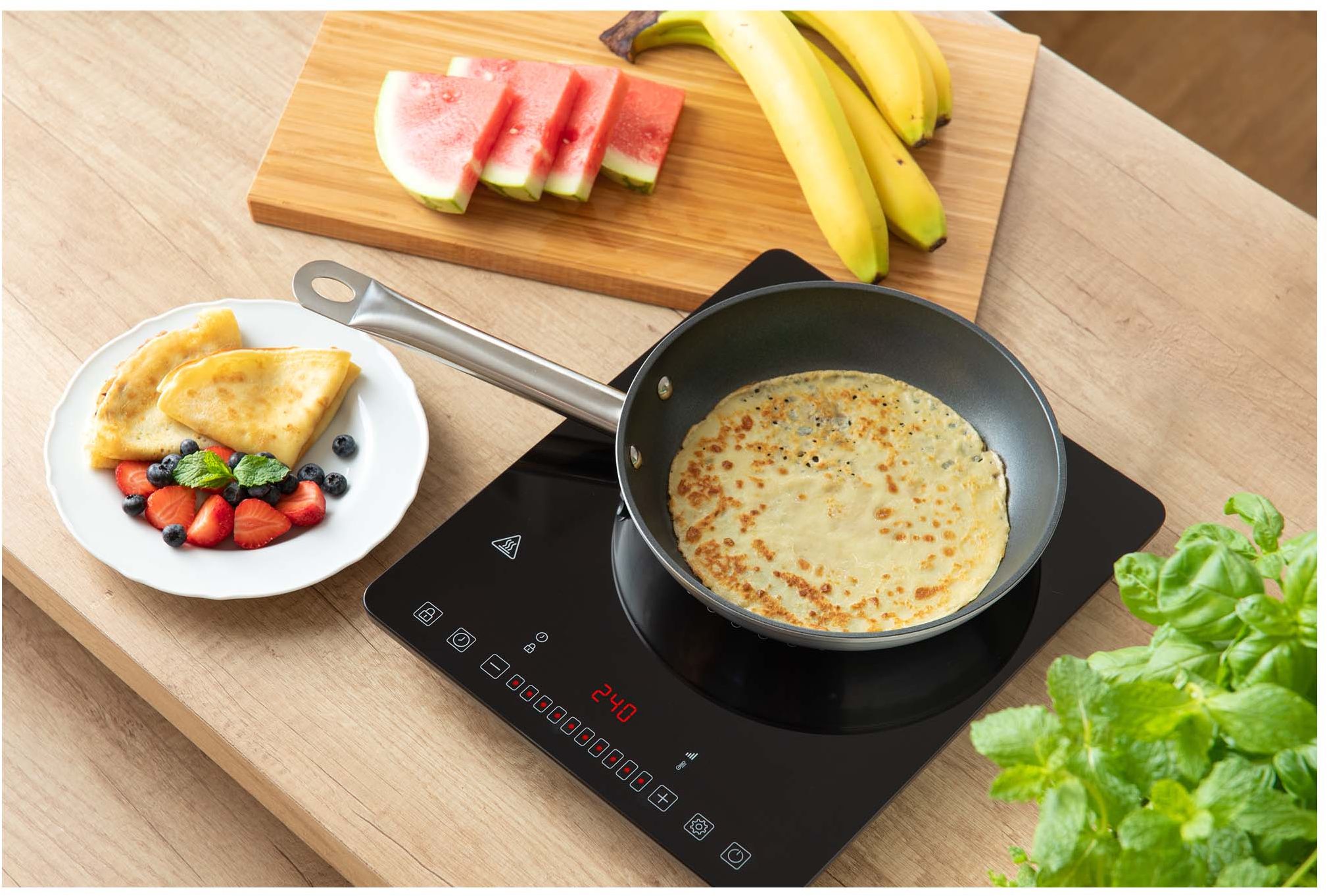 Незважаючи на те, що плита невелика, ви можете готувати на ній ефективно і заощаджувати до половини свого часу. Приготування їжі за допомогою індукції також економить електроенергію до 60% - втрати тепла мінімальні, а коефіцієнт корисної дії високий. Варильна поверхня підходить для використання з каструлями та сковорідками діаметром від 12 до 26 см.